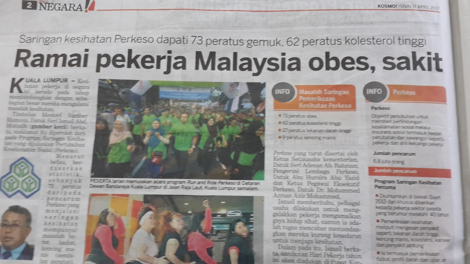 INFO DARI AKHBAR KOSMO HARI INI (17 APRIL 2017)